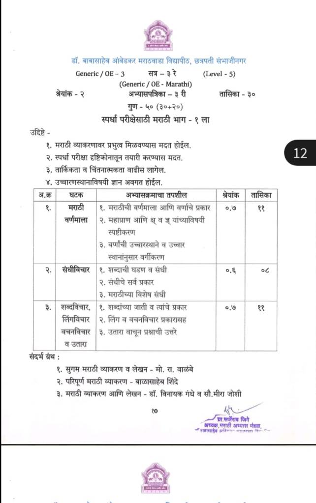 (परीक्षेमध्ये बहुपर्यायी प्रश्न प्रत्येकी २ गुणांना तर अन्य प्रश्न प्रत्येकी ०५ गुणांसाठी येतो. एकूण गुण ३० )