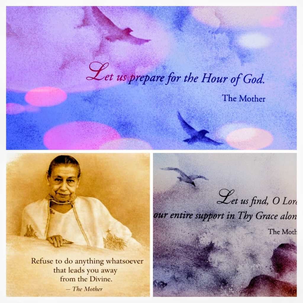 A very clear, strong and pertinent message about politics in Mother’s voice (in French after 1 minute of music, followed by English, starting at about 5 minutes)… followed by 10 minutes of Mother’s organ music.